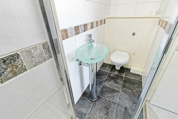 With low flush W.C, wash hand basin and shower cubicle with electric shower.