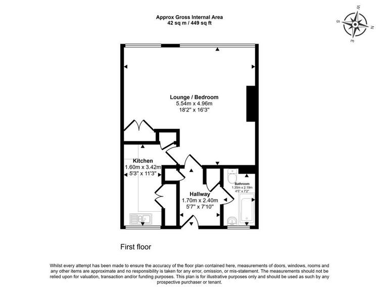 The studio apartment briefly comprises of an entrance hall, open plan living/dining/bedroom, separate kitchen and bathroom.
