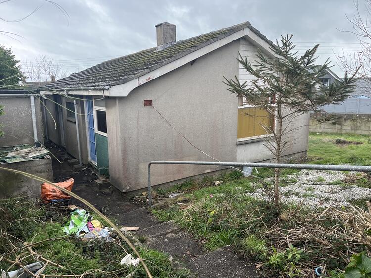 A three bedroomed detached bungalow located within a cul-de-sac and in need of a scheme of refurbishment but offering excellent potential. Large forecourt and parking area are included in the title.