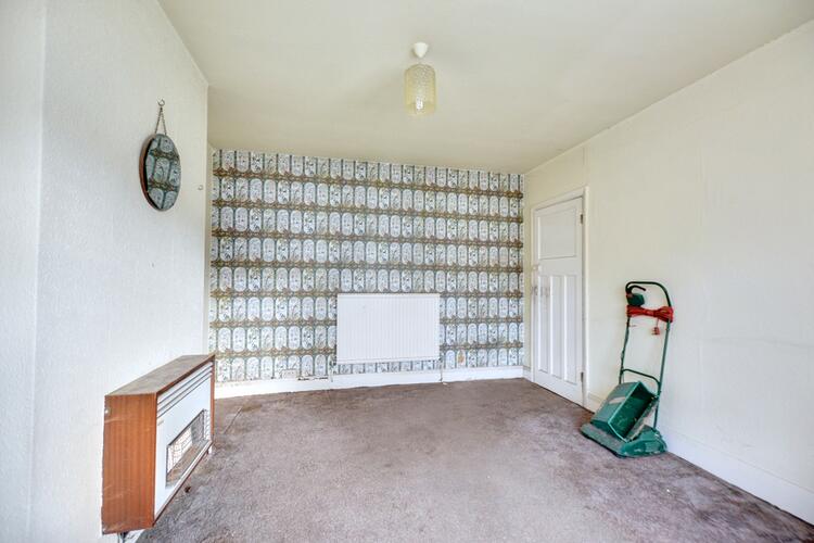 The property is set well back from the road with a lowered kerb entry point providing a driveway for off street parking for 2/3 vehicles. There is a lawn, picket fencing and brick wall to the boundary line. The driveway continues down the right hand side of the property through a pedestrian gate providing access to the rear garden and detached garage. The rear garden is enclosed and in need of renovation and landscaping as it is relatively overgrown, backing onto the local field. There are brick outbuildings and access to the garage.
