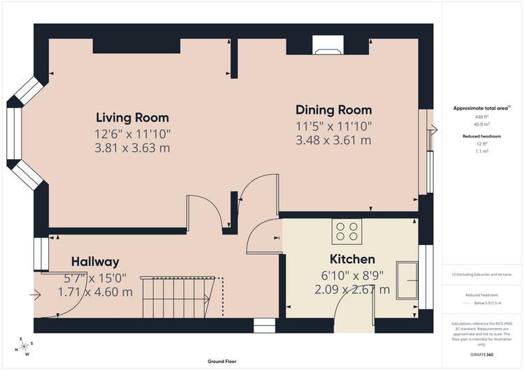 3.61 m x 3.48 m (11ft 10 x 11ft 5)