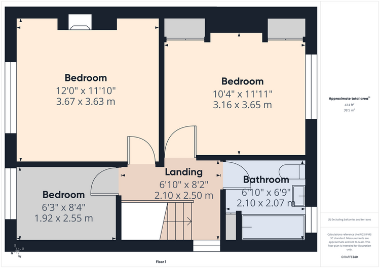 3.63 m x 3.15 m (11ft 11 x 10ft 4)