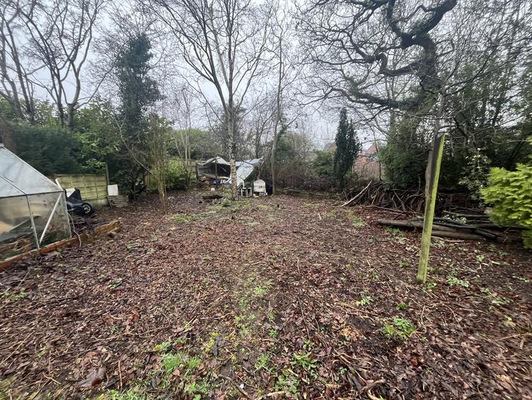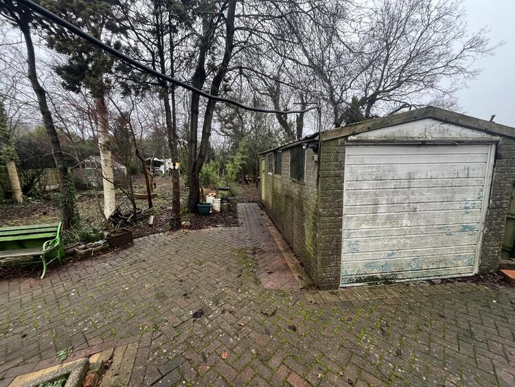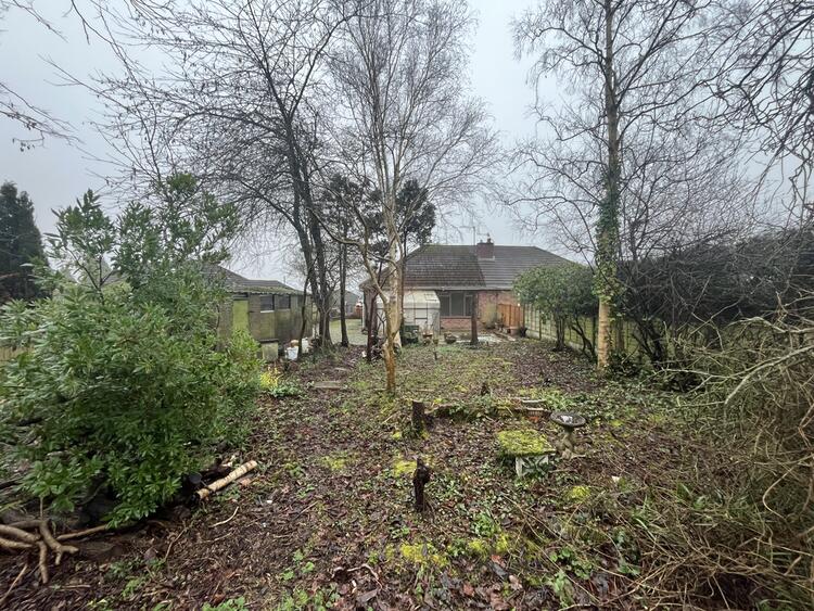 A two bedroom semi detached bungalow standing on a large plot.
