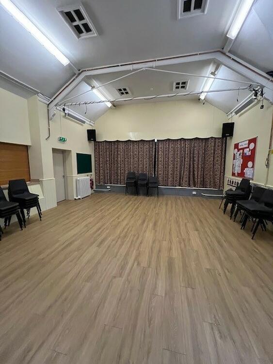 The assembly hall to the rear provides reception/hall with laminate flooring, fluorescent strip lighting and part-fitted kitchen, with serving hatch to the assembly hall. The main hall has laminate flooring, and incorporates a stage area. In addition, there are an accessible WC, and ladies WC. Externally, are landscaped grounds, and prefabricated outside store area.