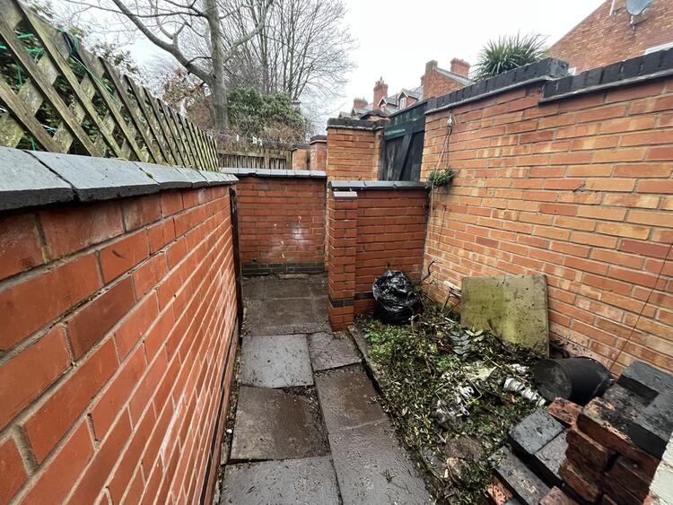 Garden to front with path.<br>Enclosed rear garden with paving, attached brick store and rear gated access.