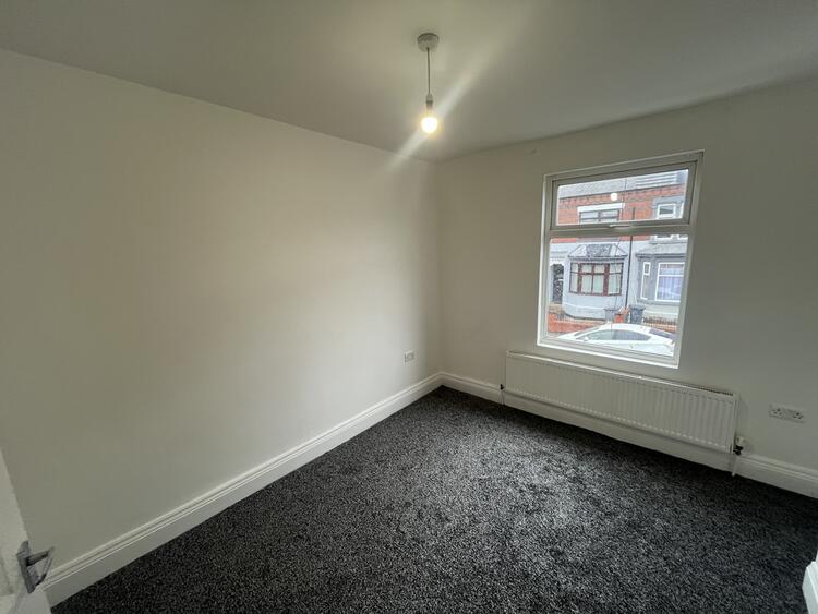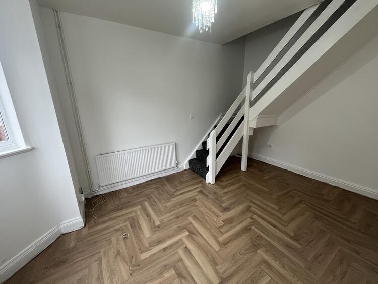With radiator, bay window to front and stairs off.