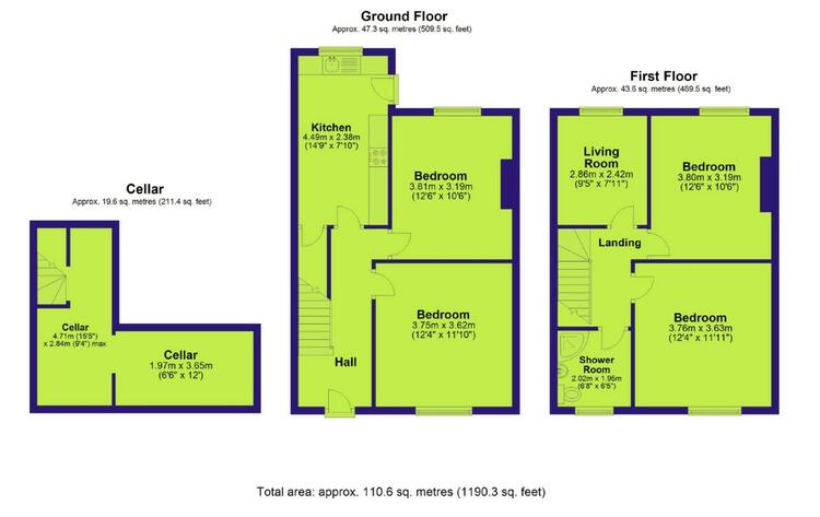 The accommodation includes four double bedrooms, a first-floor lounge, shared kitchen/diner and bathroom. A full-height unconverted basement offers potential for a cinema room or additional communal space. The loft remains unconverted and may offer future development potential (subject to planning).