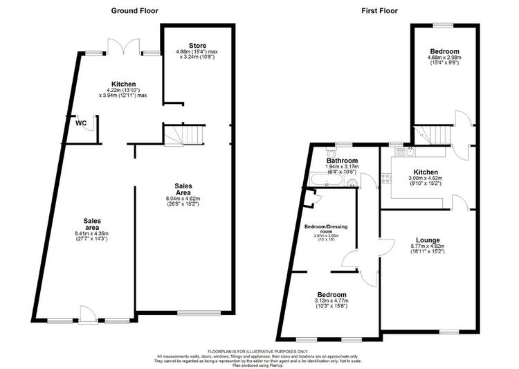In brief the accommodation consist of two sales areas with kitchen and WC along with a workshop/store. To the first floor, there is a well appointed fitted kitchen with built-in-appliances, living room, landing providing access onto two/three bedrooms and bathroom fitted in three piece suite in white with shower. To the rear there is an enclosed low maintenance yard with outbuilding.