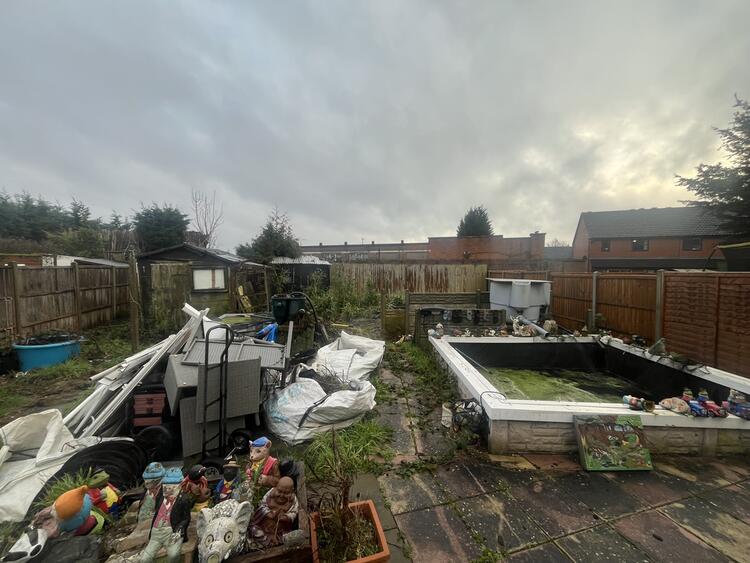 Garden to front. Side pathway and attached store. Good size rear garden with patio, lawn and fish pond. Enclosed by wood panel fencing.