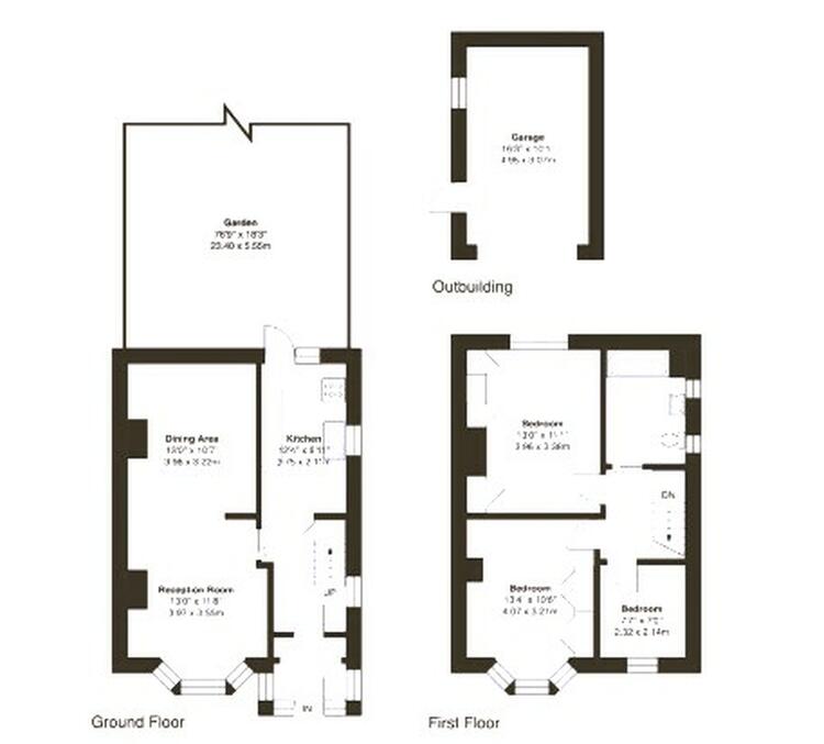 Front garden with potential for further parking, shared driveway and garage. Good sized private mature rear garden.
