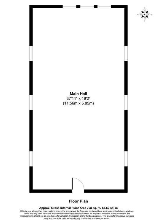 The building has attractive stone elevations underneath a natural slate roof with arched windows and there is front and rear access into the building. The single room measures approximately 11.5m x 5.8m and the height of the internal roof apex is approximately 7m. There is no outside space at all with the building.