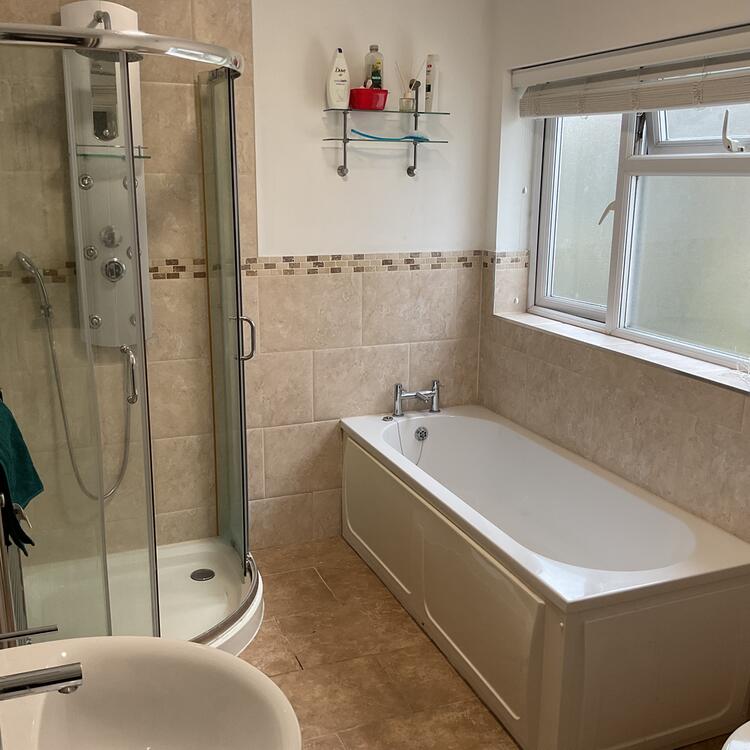 With four piece bathroom suite comprising of bath, separate shower cubicle, low level wc and wash hand basin, fully tiled, frosted double glazed window and towel radiator.