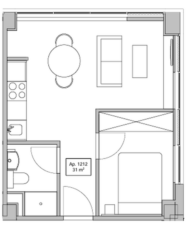 The apartment is nestled within a secure gated community, ensuring peace of mind for residents. The accommodation comprises an open-plan kitchen/diner equipped with integrated appliances, a modern bathroom and a spacious double bedroom with a built-in wardrobe.