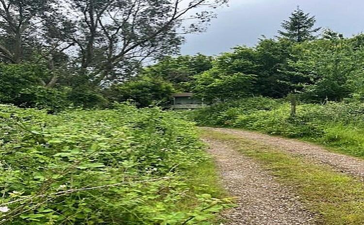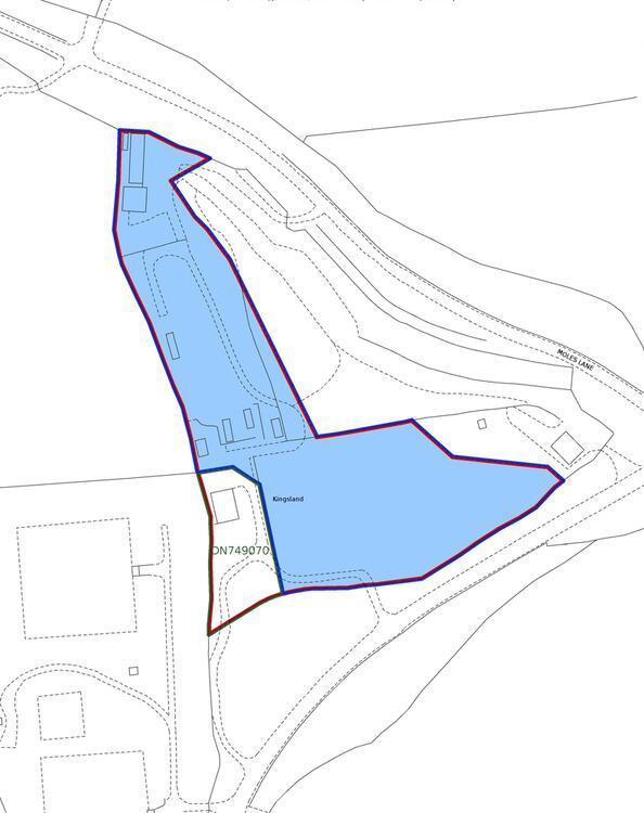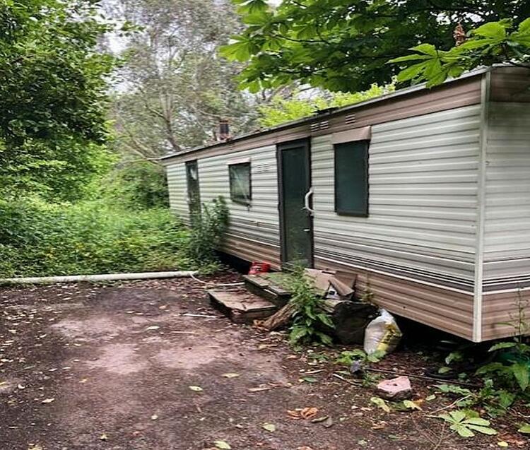 Currently the property is held on two separate titles. One comprises the detached house with garage; the other consists of a parcel of land comprising two open fields and a section of land to the centre with a number of mobile homes and old timber structures.