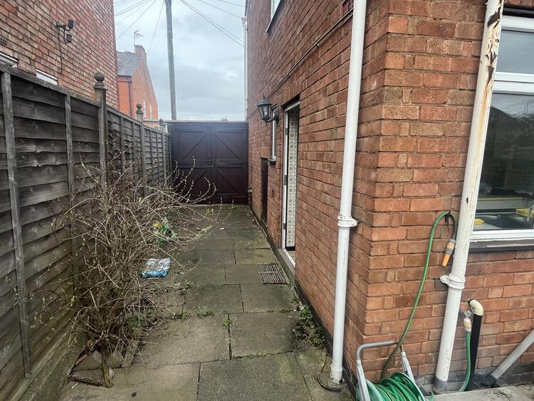 Garden to front. Gated driveway for small car. Side paved area/drive. <br>Enclosed rear garden with lawns, stocked flower beds and timber shed.