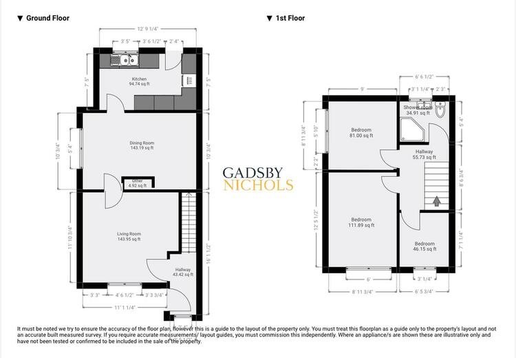 GROUND FLOOR, extended entrance hall, front lounge, rear dining room, and kitchen extension. FIRST FLOOR, landing, three bedrooms, and modern shower room. OUTSIDE, front, side, and rear gardens, attached shed, and single garage.