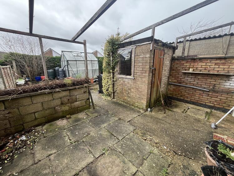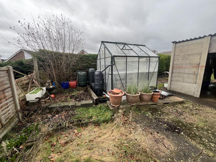 Small garden to front with a green area to the front of the property. Enclosed rear garden with patio, store and green house. Personal door to Single Garage and Parking.
