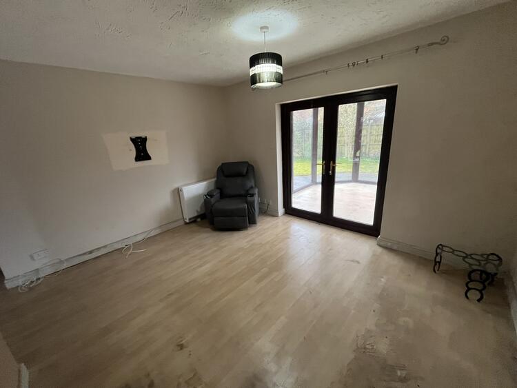 Electric radiator and French doors to conservatory.