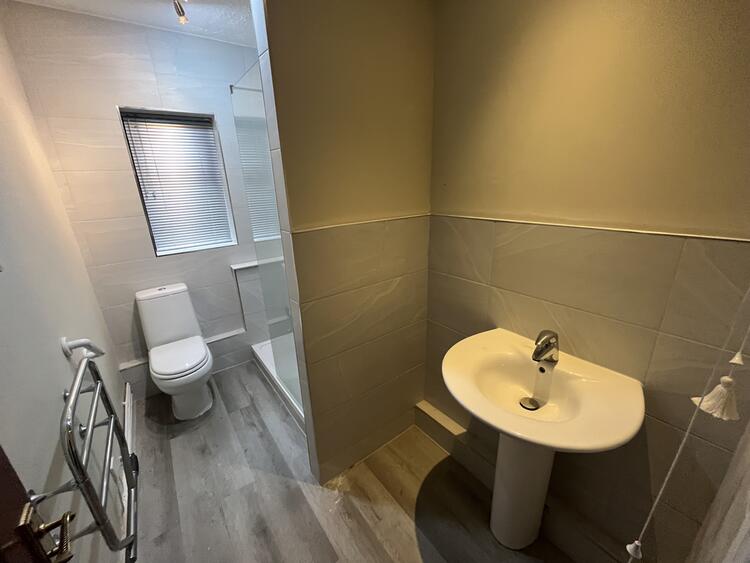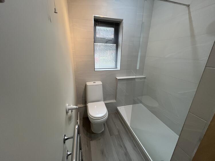 Comprising low flush w.c. wash hand basin and shower cubicle. Heated towel rail and window to front.
