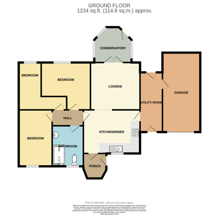 Accommodation comprises, Porch, Dining Kitchen, Utility Room, Lounge, Conservatory, Study, Two Bedrooms and Bathroom.