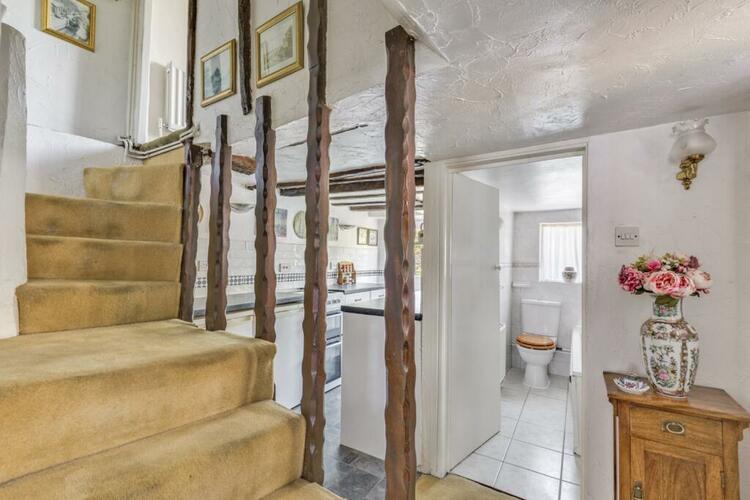 The accommodation provides a well proportioned lounge with inglenook fireplace and French door to the Westerly facing rear garden, a fitted kitchen and a ground floor bathroom. A split staircase leads to the two double bedrooms, both very generous in size. The house boasts a wealth of character features including beautiful wall and ceiling beams and latch doors.