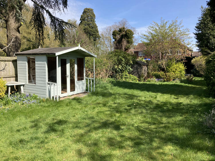 Long and enclosed garden to the rear, mainly laid to lawn with a patio area and framed by a variety of mature plants and trees.